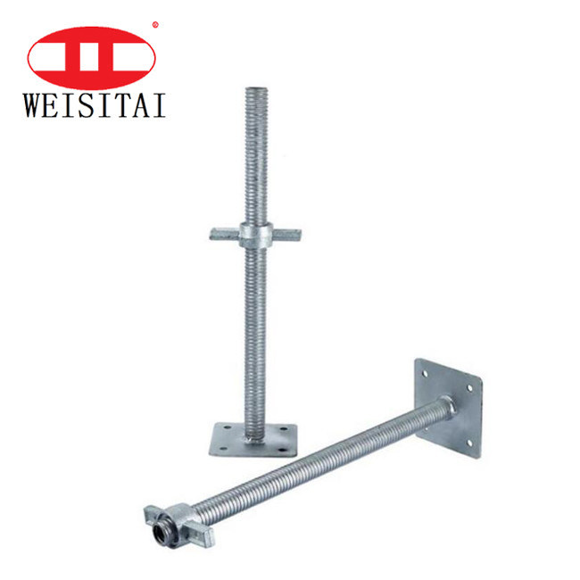 Jack base do andaime localiza-se na parte inferior dos padrões, pode fornecer ajuste para variações nos níveis do solo, pode ser usado com a maioria dos tipos de andaimes do sistema.